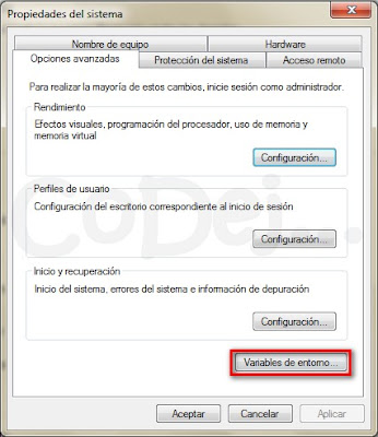 y en la ventana que se carga seleccionamos Variables de entorno…