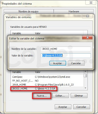 Se carga otra ventana en la que podemos ver las variables de entorno que tiene el sistema actualmente, seleccionamos Nueva…   luego definimos el nombre de nuestra variable y el valor correspondiente a la ruta donde lo tenemos instalado…(como vemos en la imagen también se tiene la variable JAVA_HOME)